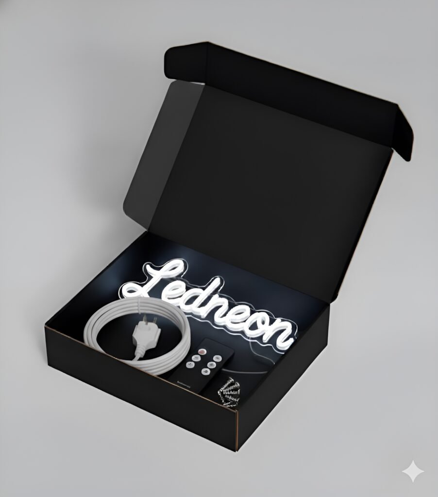 Each LED neon comes with a 2-meter power cable and a EU adapter. For international orders or different socket types, simply specify your adapter needs during the checkout process.
